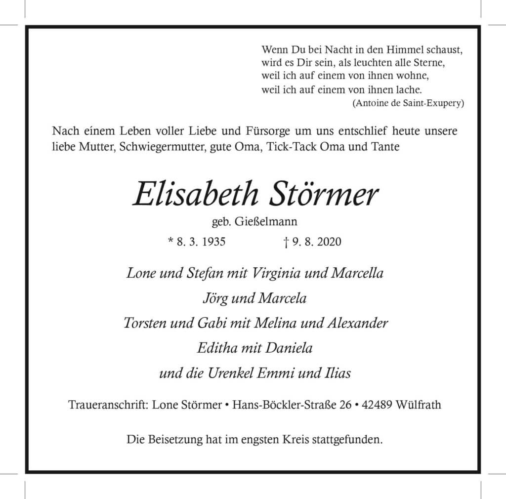 Elisabeth Störmer † 9. 8. 2020