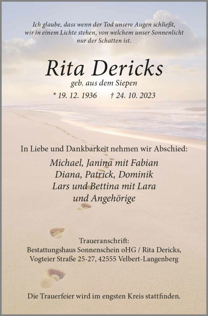 Rita Dericks † 24. 10. 2023
